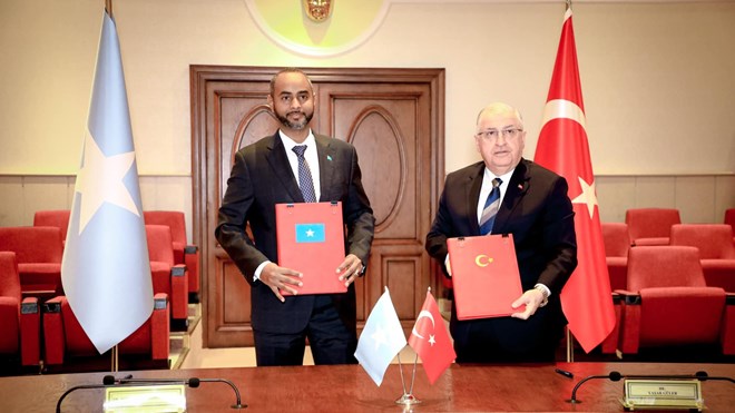 "Waxaan wada sixiixaney heshiis taariikhi ah ee Difaaca iyo Dhaqaalaha oo sii xoojin doono amniga Soomaaliya iyo kan Gobolka" ayuu yiri Wasiirka Gaashaandhiga dowladda Soomaaliya Cabduqaadir Maxamed Nuur.