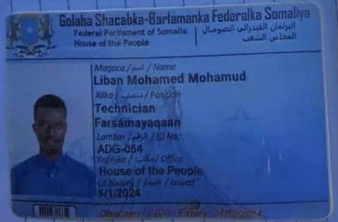Kaarka la helay ayaa waxaa ku qornaa qof lagu magacaabo Liibaan Maxamed Maxamuud oo shaqadiisu ay ahayd farsamo yaqaan katirsanaa baarlamaanka Soomaaliya.