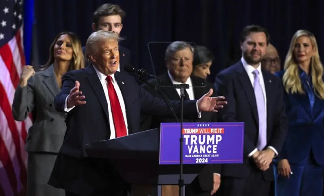 Guusha uu gaaray kadib, Madaxweyne Trump waxa uu khudbad ka hor ka jeediyay taageerayaashiisa oo iskugu soo baxay xaruntiisa ol’olaha ee Palm Beach, ee gobolka Florida, waxa uu taageerayaashiisa u sheegay in uu ku dhawaaqi karo guusha uu gaaray, taasi oo uu ku bilaabay mahadcelin uu u jeediyay qof kasta, waxa uuna doorashada ku tilmaamay dhacdadii siyaasadeed ee ugu weyneyd ee dalkaasi ka dhacda.