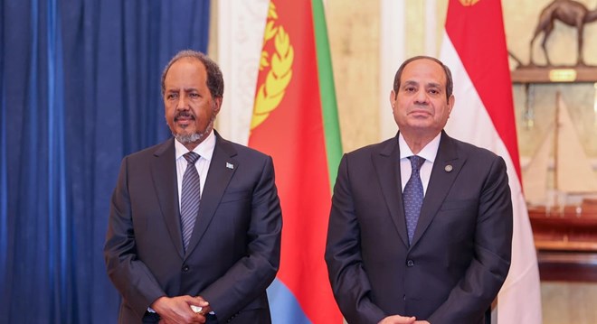 newsinsideMadaxweynaha Masar Abdel Fattah el-Sissi ayaa Khamiistii shalay ka qeyb galay shir madaxeed ka dhacay magaalada Asmara ee caasimadda dalka Eritrea, halkaasi oo isaga iyo madaxda Soomaaliya iyo Eritrea ay ku ballan qaadeen iskaashi xooggan oo ku saabsan amniga gobolka.