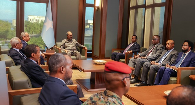 Jimco, Agoosto 29, 2025 (HOL) - Madaxweynaha dowladda Federaalka Soomaaliya Xasan Sheekh Maxamuud ayaa xarunta Madaxtooyada dalka ku qaabilay Wasiirka arrimaha dibadda ee dalka Jabuuti Cabdulqaadir Xuseen Cumar iyo wafdi uu hoggaaminayay.
