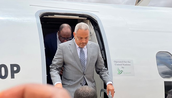 newsinsideWasiirka iyo wafdigiisa waxa garoonka Ugaas Khaliif kusoo dhaweeyay masuuliyiin ka tirsan maamulka gobolka Hiiraan Saraakiisha Ciidamada dowldda Jabuuti ee ku sugan Baledweyne ee qeybta ka ah howlgalka AUSSOM iyo saraakiisha ciidanka Militeriga Soomaaliya ee gobolka Hiiraan.