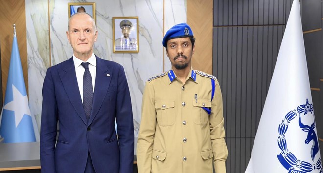 Axad, February 2, 2025 (HOL) - Taliyaha Ciidanka Booliiska Soomaaliyeed Sarreeye Guuto Asad Cismaan Cabdullaahi ayaa maanta ku qaabilay xafiiskiisa magaalada Muqdisho Safiirka Dowladda Uk ee Soomaaliya Mike Nithavrianakis, ku xigeenkiisa Ambassador Sam Thomas, Xoghayaha Difaaca, Siyaasadda Natasha Hosford iyo Xoghayaha arrimaha ladagaalanka Argagaxisada Dan O’Byrne.