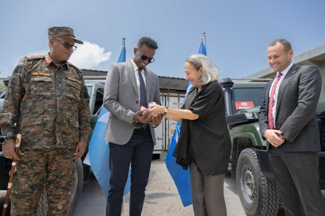 UNMAS ayaa Soomaaliya ku wareejisay Qalabkan, oo ka kooban gaadiidka qaraxayda ka hortagga, qalabka baarista waddooyinka, iyo qalabka looga hortago walxaha qarxa. Waxay sheegtay in la filayo inuu sare u qaado dadaallada Soomaaliya ee la dagaallanka qaraxyada la hago (IED).