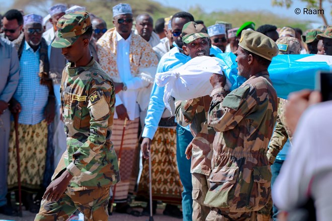 Axad, January 5, 2025 (HOL) - Waxaa maanta magaalada Baledweyne ee xarunta gobolka Hiiraan aas Qaran loogu sameeyay 6 askari oo ka mid ahaa ciidanka xoogga dalka oo dhawaan kooxo hubeysan qabiil ahaan ugu dileen deegaanka Ceel baraf ee gobolka Shabeellaha Dhexe.