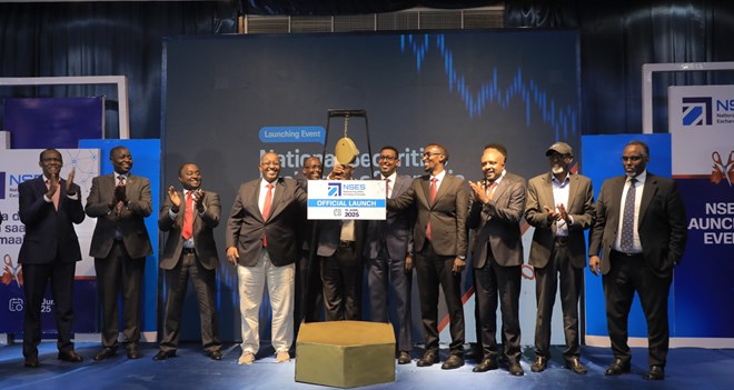 Sabti, Juun 21, 2025 (HOL) - Waxaa Magaalada Muqdisho Markii ugu horeysay laga daahfuray Suuqa Saamiyada Soomaaliyeed oo ay ka soo qaybgaleen, Madaxda iyo Masuuliinta Suuqa Saamiyada, Guddoomiyaha Rugta ganacstada Soomaaliya Maxamuud Cabdikariin Gabayre, Wasiir ku xigeenka wasaaradda Tamarta & Kheyraadka Biyaha XFS. Mohamed C/lahi Faarah, Xildhibaano ka tirsan dawladda Fadeeraalka Soomaaliya, Agaasimaha SOMINVEST Mohamed Dubo, shirkadaha isgaarsiinta dalka, iyo Midowga Bangiyada Soomaaliya.