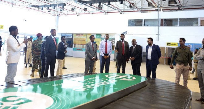 Arbaco, October 1, 2025 (HOL) - Raysal Wasaaraha Xukuumadda Federaalka Soomaaliya Xamse Cabdi Barre ayaa maanta markale kormeeray qeybaha kala duwan ee adeega garoonka diyaaradaha Aadan Cadde ee magaalada Muqdisho.