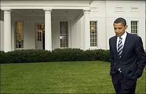 Sen. Barack Obama approached the media after a meeting with President Bush at the White House on Jan. 5. (AFP/File/Mannie Garcia)