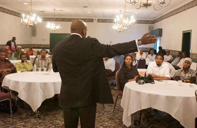 Mr. Roble told the stories of Somalis who are still in migration and are in desperate need of help, and other Somalis who have succeeded in life after they re-settled in