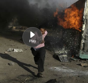 The attacks escalated sharply over the weekend. Hundreds of people are sheltering at churches and police stations. Mobs set up burning barricades in some suburbs, while the violence spread to parts of Johannesburg's central business area, with streets shut off by makeshift barricades and shops looted.