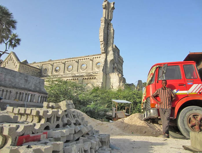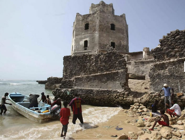 Amid the wreckage of war, some traces of the city's old charm remain in the ruined stone buildings clustered around the old port. The stench of rubbish that was dumped here during years of fighting has at least partially subsided. A new sea wall has been built, lined on the outer side with dozens of rusted metal drums, a reminder of the way Somalia's shores have been used as a dumping ground.