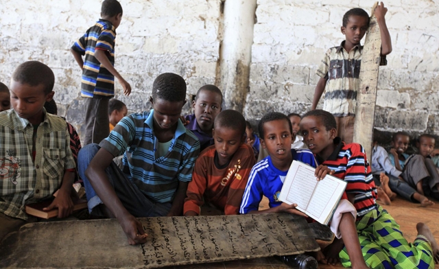 Pupils attend classes at a madrasa (Islamic school) in the Holy Quran school in Hodan district of Somalia’s capital Mogadishu. (Reuters)