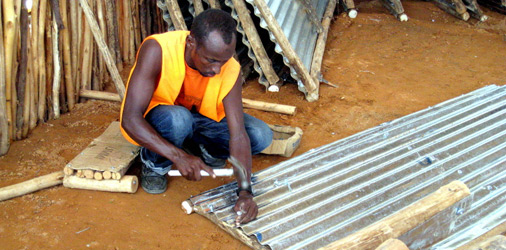 The shelter type NRC is building in Dolo Ado is made from locally produced materials, benefitting the local and national economy. The walls are made from bamboo, one of Ethiopia´s main export products, which can be sourced not far from the camps. Bamboo grows quickly, making it a more environmental friendly material for construction than trees. The corrugated iron sheets used to make roofs, windows and doors are also produced in Ethiopia. Windows and doors are lockable and therefore provide beneficiaries with increased protection. So far in 2012, NRC, together with the refugees and host community, has constructed 3,015 of these shelters in Dolo Ado, benefitting more than 15,000 people.