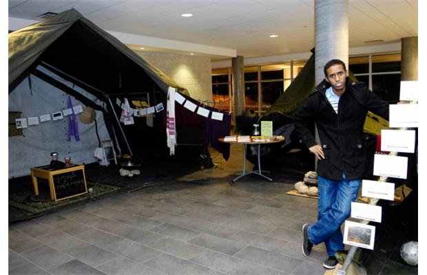 Photos of Muhamed Hassan in his mock refugee camp set up at the University of Regina in Regina Saskatchewan November 26, 2012. Photograph by: Bryan Schlosser , Regina Leader-Post