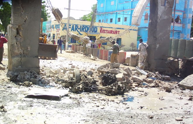 The Shabaab also said they carried out the restaurant bombing, saying they were targeting Ethiopian troops and soldiers from the AU mission stationed in the town.