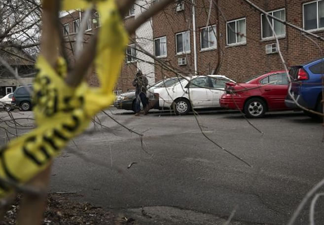 This apartment parking lot near Lake St. and 29th Avenue S. was the scene of a double homicide overnight, leaving a man and woman shot to death in their parked car and seen Saturday, April 12, 2014, in Minneapolis, MN.