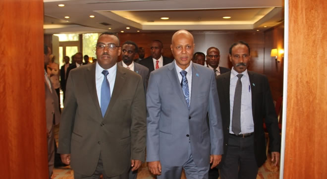 The prime minister is accompanied by key ministers that include foreign minister Abdirahman Duale, finance minister Hussein Abdi Halane, information minister Mustaf Sheik Ali Dhuhulow and Transportation and Aviation minister Said Qorshel.