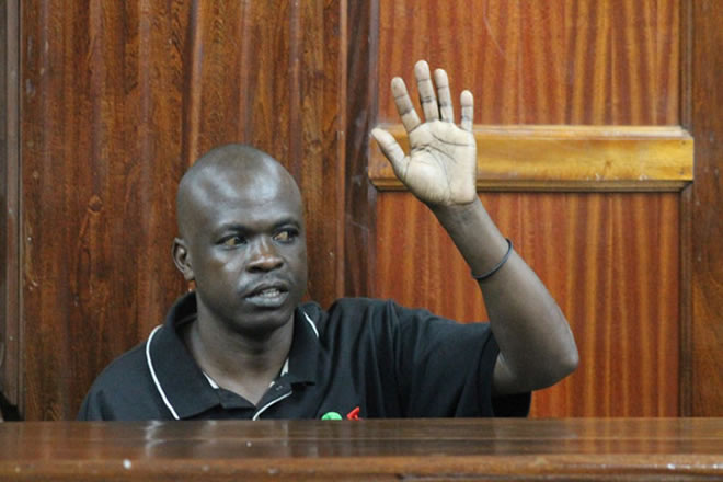 Mr Calistus Mashati Ngesa in a Nairobi Court Monday when he testified in a case against four terror suspects; Mohammed Abdi, Liban Omar, Adan Ibrahim and Hussein Mustafah over the Westgate Shopping Mall attack on September 21 last year which left 67 people dead. PHOTO/PAUL WAWERU NATION