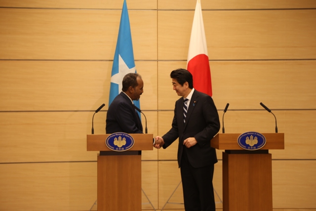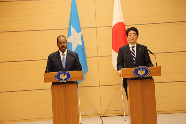 “Since last year Japanese government carried out more projects in Somalia and now-- as Prime Minister Shinzo Abe announced Japan will increase its assistance to Somalia” President Hassan Sheik Mahmoud told the joint press conference asking Japan to help his country in the fields of technology, fisheries and the reconstruction of the country.
