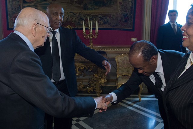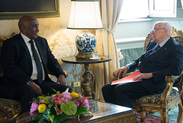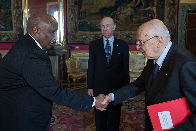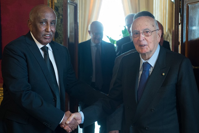He delivered a message of greetings and goodwill from Somali president to Mr. Giorgio Napolitano, the President of Italy.