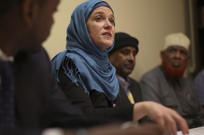 Minneapolis is home to a large Somalian Muslim community. During the 2013 Mayoral race, most Somalian supported and voted for Elizabeth Betsy Hodges (born 1969), the DFL candidate who won the election and took Mayoral office in January 2014.Last week, Betsy created a storm when she addressed a group of Somali business owners and elders at a Somali mall in south Minneapolis while donning a beautiful dark blue Islamic headscarf (Hijab). Mayor was accompanied by her Somali liaision, Abdirahman Muse.