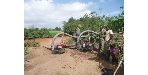 Somalis irrigating their farms with the help of pumps procured by QRC.