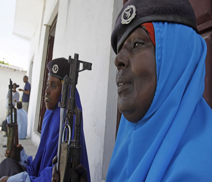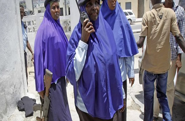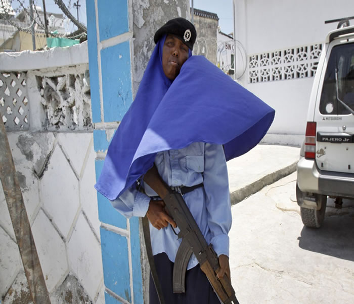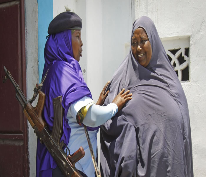 MOGADISHU, Somalia — With an AK47 automatic rifle slung over her shoulder, Naeemo Abdi frisks people coming into a Mogadishu police station.