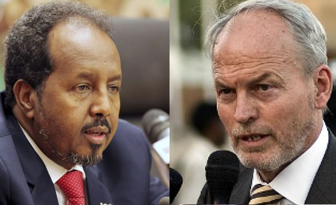 President Hassan Sheikh and UN Envoy to Somalia Nicholas Kay