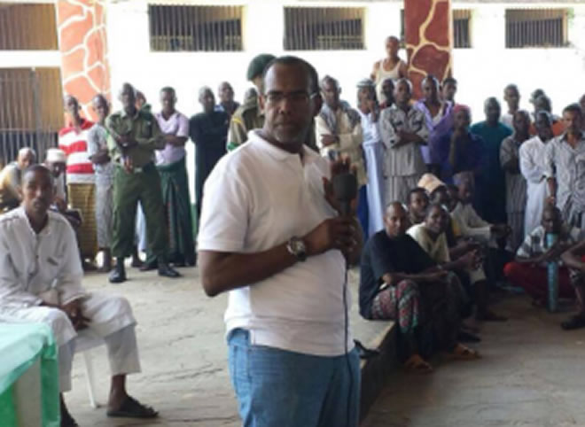 Somali Ambassador Mohamed Ali Nur at Shimo La Tewa Prison, Mombasa, on Saturday. He addressed Somalis serving jail terms.