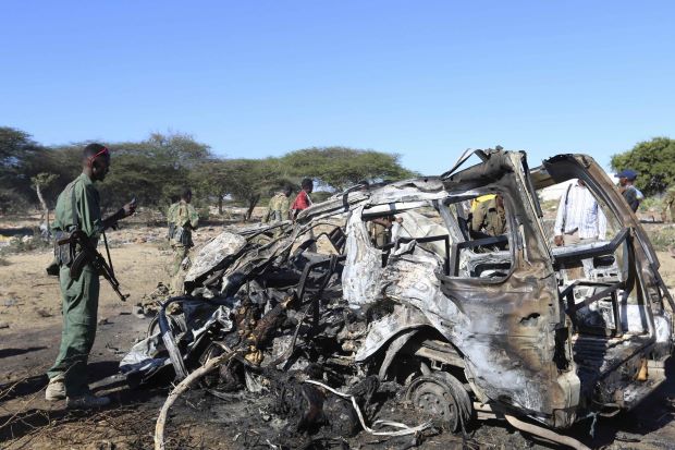 "It is a disaster. The flesh of the people was mixed up and stuck to the tarmac road and the debris of the vehicle," said Major Hussein Ahmed, a senior police officer, describing the scene near the African Union convoy where minibuses were hit.