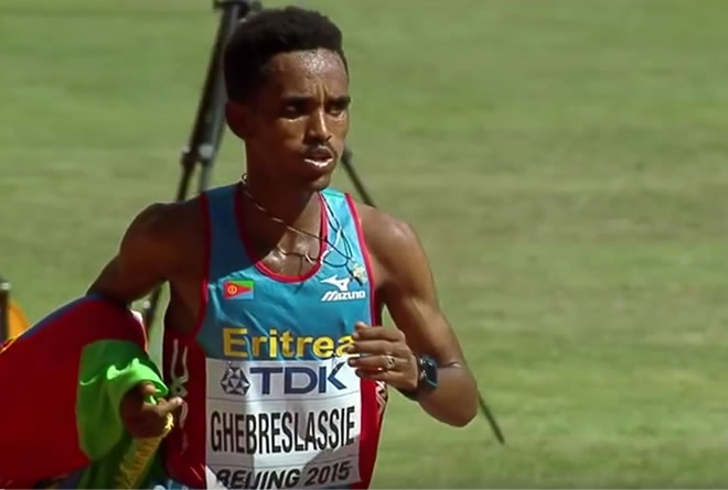 Sixteen years after Haile Gebrselassie made history by becoming the first runner to win four world titles in the 10,000m, his near-namesake Ghirmay Ghebreslassie was in the spotlight in the opening competition of the IAAF World Championships, Beijing 2015.
