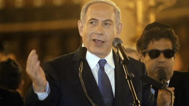 © Pool/AFP/File | Israel's Prime Minister Benjamin Netanyahu gives a speech during a ceremony at the Grand Synagogue in Paris, on January 11, 2015, for all the victims of the attacks in Paris this week, which claimed 17 lives