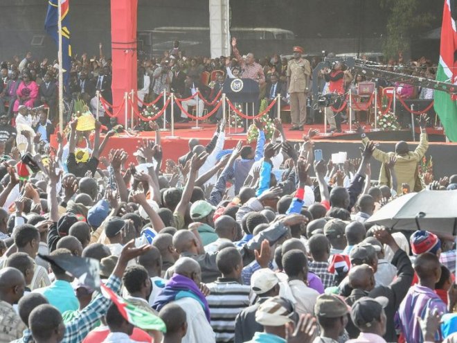 President Uhuru Kenyatta speaks at Afraha Stadium on Saturday / BEN NDONGA