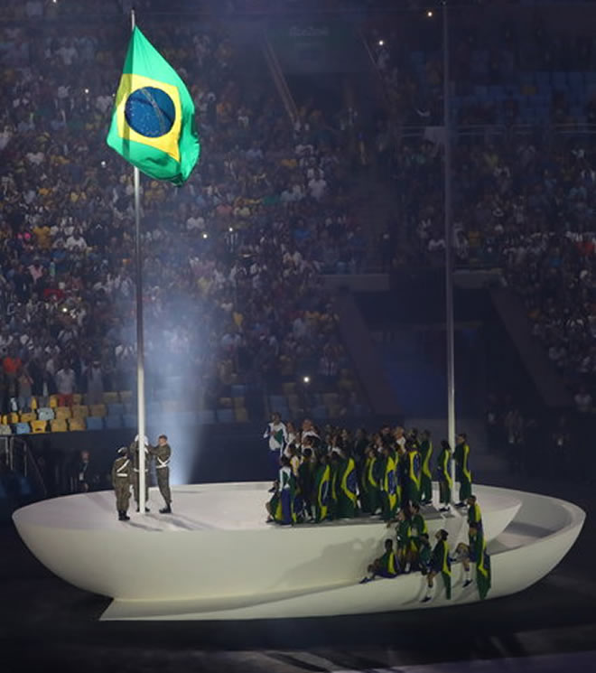 The Brazilian flag bears the motto “Ordem e Progresso” — order and progress, the country’s hope for the Rio Games. Credit Chang W. Lee/The New York Times