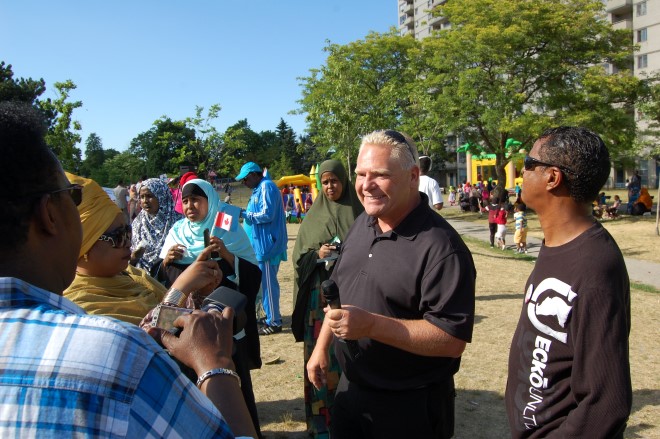 Doug Ford, who is no longer a city councilor attended the event saying that the “Somali community has supported my family for 25 years, I wanted to come by and show my support for the community. Michael Ford, the nephew of Rob and Doug Ford was in attendance ahead of Monday’s by-election where he hopes to win Rob Ford’s former council seat.