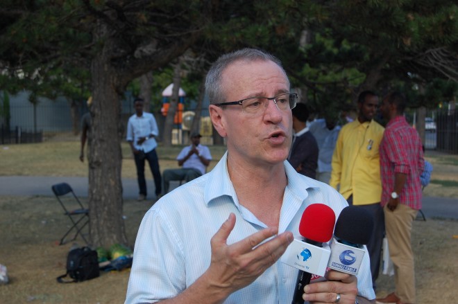 Borys Wrzesnewsky told the crowd a heart wrenching story about the struggle and poverty he witnessed firsthand in Somalia, the thought of a little girl that he met still lingers in his mind as he wonders what became of her. He pledged that with the Liberal Party back as the governing party of Canada, he will try to put together a donor conference to assist Somalia and assured Somali Canadians of his continued support.