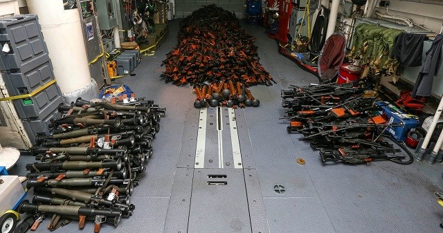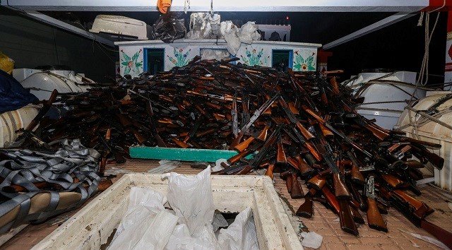 After assessing the vessel to be stateless, 1989 AK-47 assault rifles, 100 rocket propelled grenade launchers, 49 PKM general purpose machine guns, 39 PKM spare barrels and 20 60mm mortar tubes were seized from the vessel that was headed towards the Somalia coast.