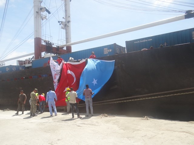 According to Somali officials, the cargo vessel carrying 11,000 metric tons of food, clothing and blankets docked at the Mogadishu port late on Sunday, with the Turkish government said it would hand over the aid to the Somali government to deliver it to the drought victims across Somalia.