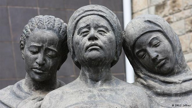 A statue of three grieving women stands outside the "Red Terror" Martyrs Memorial Museum beside today’s Meskal Square, formerly Revolution Square. In 1976, during a speech in the square Mengistu theatrically dashed a bottle filled with blood on the ground, launching a campaign that killed tens of thousands accused of being anti-revolutionaries.