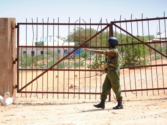 A file photo of a Kenya Defense Forces officer man the main gate to the entrance of Kenya Somali boarder in Mandera