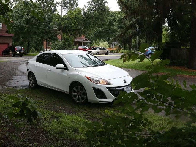 A dead man was found inside a white Mazda on Wayne Street in Ottawa. TONY CALDWELL