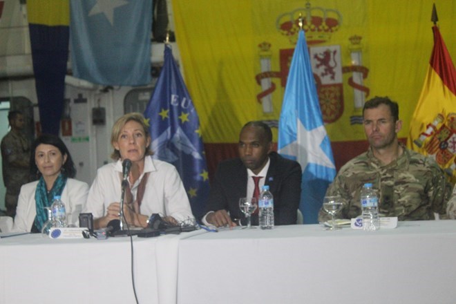Many major naval officials were in attendance at the high-level meeting including EU TM mission CDR, Brig. Gen Maurizio Morena, EUCAP Somalia head of mission Ms. Maria-Cristina Stepanescu, EU Navfor OpCDR, Maj. Gen Robert Magowan and EU Navor FCDR, and Rr. Adm Rafael Fernandez-Pintado