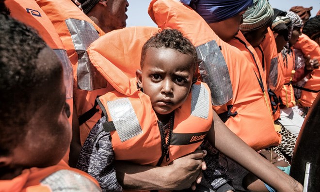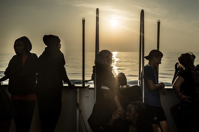 People rescued by the ship Aquarius in the Mediterranean. Photograph: Nicoló Lanfranchi for The Guardian