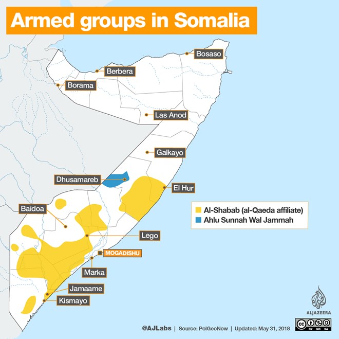 Al-Shabab has now been removed from all major cities, but retains control of some areas of the country.