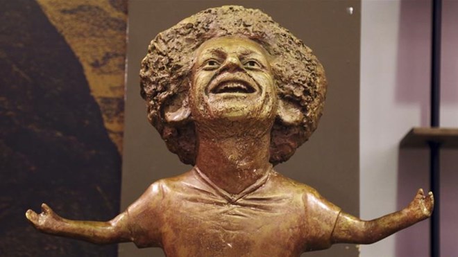 But a new bronze statue of the 26-year-old has raised eyebrows across the world for its curiously ill-proportioned body parts, including its abnormally large head.
