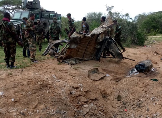 FILE PHOTO | Kenya Defence Forces (KDF) at the scene of the attack that left at least seven soldiers dead on Sunday, May 6, 2018. PHOTO| COURTESY