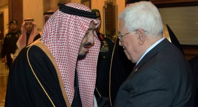 King Salman bin Abdulaziz (L) greeting Palestinian President Mahmoud Abbas before a meeting in Riyadh [File: AFP]