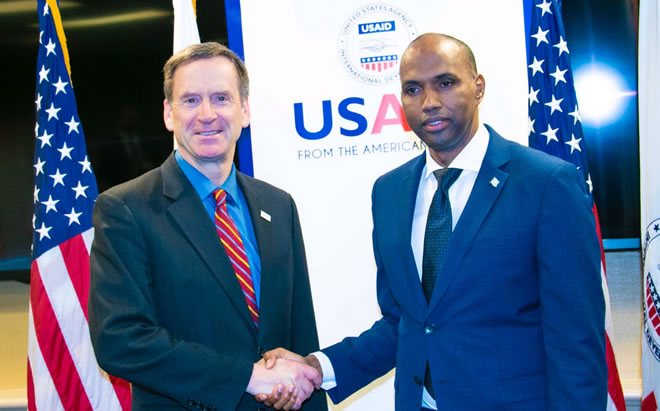 USAID administrator Mark Green and Somali Prime Minister Hassan Ali Khayre - Photo file