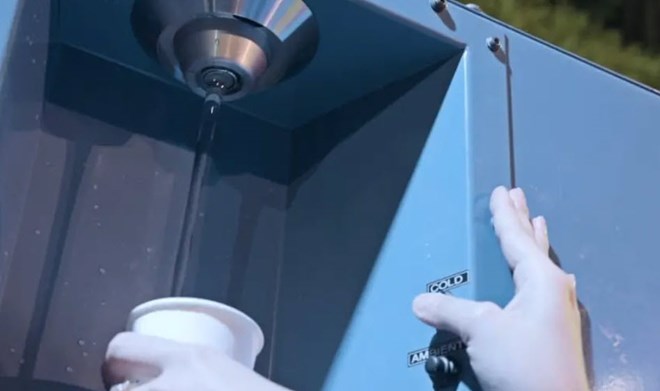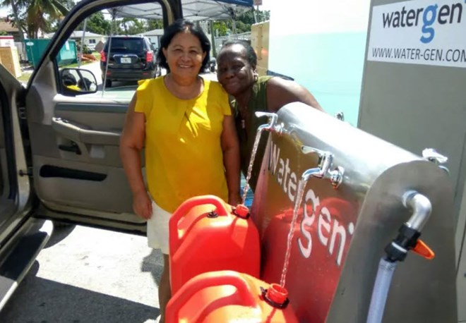 People drink from a Watergen machine in Florida after Hurricane Irma, September 2017 (Credit: PR)