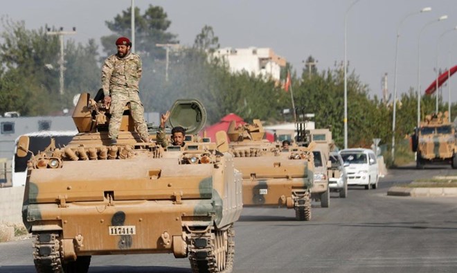 A convoy of 20 armored vehicles carrying Turkish-allied Syrian rebels entered Syria from Ceylanpinar. Some made victory signs, shouting “Allahu akbar” (God is greatest) and waving Syrian rebel flags as they advanced toward Ras al Ain.